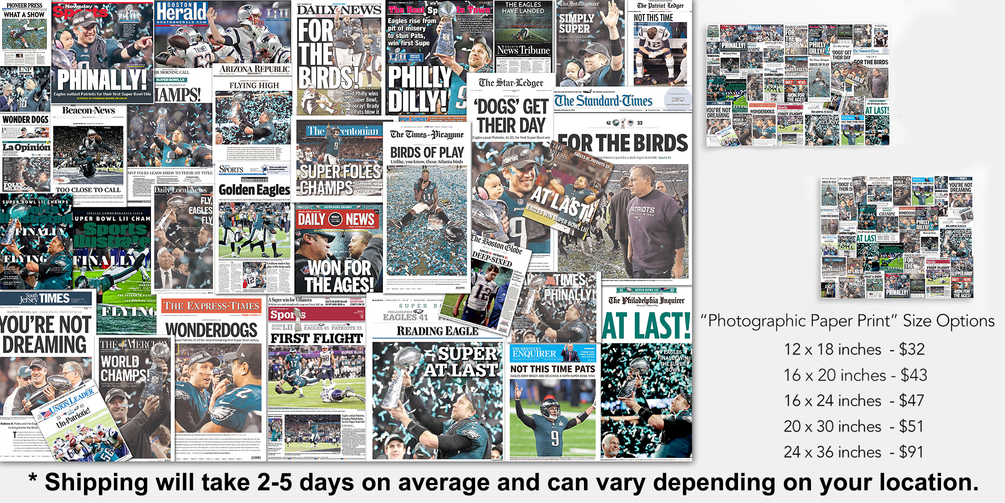"Photographic Paper Print" - News Paper Front Page Collage of Philadelphia Eagles winners of 2018 Super Bowl