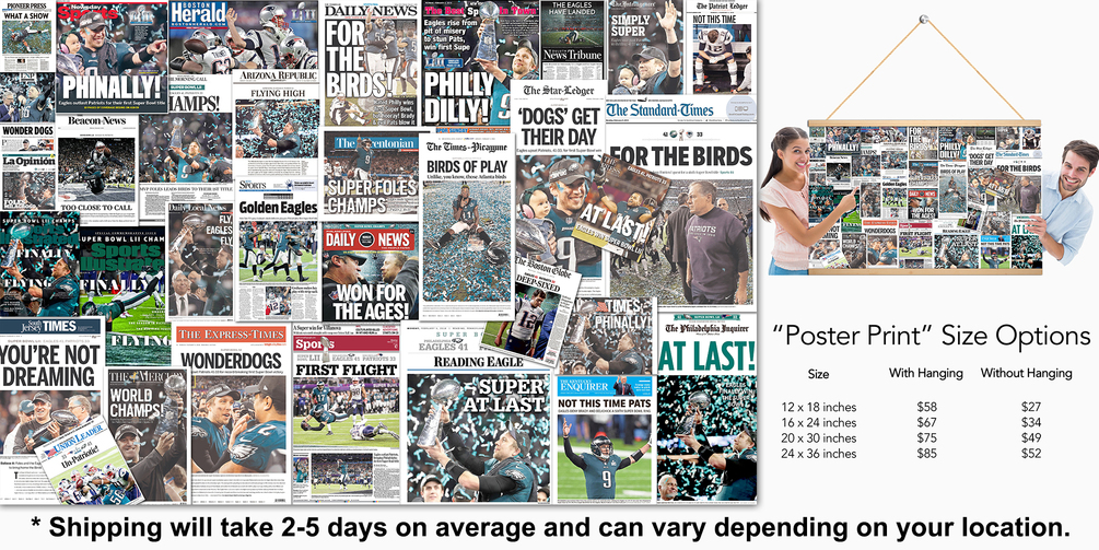 "Poster Print" - News Paper Front Page Collage of Philadelphia Eagles winners of 2018 Super Bowl
